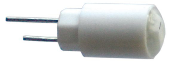 Chip-LED bipolar 5,6x10mm Spezielle Kombination aus Reflektor und Streulinse. Dadurch wird eine Abstrahlcharakteristik ähnlich einer Mehr-Chip LED erreicht. Zwischen Reflektorelement und Sokel ist zur Realisierung der Bauhöhe ein Isolierteil in Leuchtfarbe der LED eingebaut. Innenraum im Bereich der Kunststoffteile zur verbesserten Wärbeabfuhr vergossen. Keine UV/IR-Strahlung. Energieeffizienzklasse: nicht kennzeichnungspflichtig