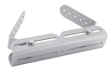 Eckhalter 360mm für Displaystrahler max. 22kg Montageprofil mit zwei beweglichen Befestigungsbügeln zum Befestigen von u.a. Strahlern auf Gebäudeecken., silber - RAL 9006, verzinkt, pulverbeschichtet, Tragkraft: max. 22 kg