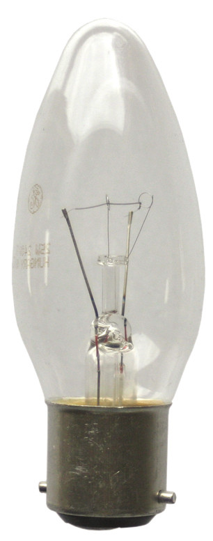 Kerzenlampe 35x100 mm Allgebrauchsglühlampe Kerzenform Ba22d, klar. Kerzenlampen sind für eine besonders dekorative Allgemeinbeleuchtung in stilvollen Leuchten vorgesehen. Sie können freistrahlend, aber auch durch geschmackvolle Leuchtengläser umgeben, zum Einsatz kommen. Energieeffizienzklasse: EOL Quecksilbergehalt (mg): 0 Schaltzyklen: 4000 Power-Faktor: 1