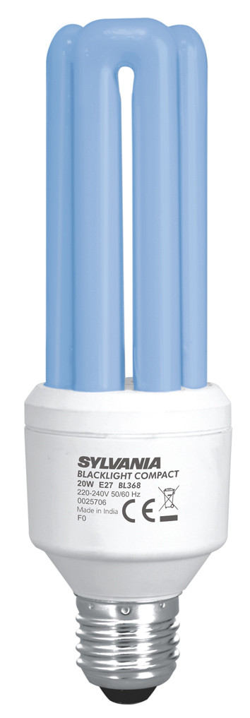 Energiesparlampe 44x180mm Lampe emittiert UV-Strahlung im Bereich 315-400nm mit einem Maximum bei 368nm. Anwendungen: Insektenfallen, Diazotypie (Lichtpausverfahren), Chemische Prozesse, z.B. Polymerisation, Erkennung von Mineralien. Energieeffizienzklasse: nicht kennzeichnungspflichtig