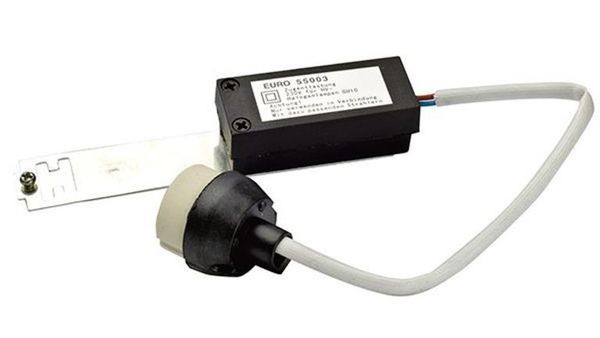 Zugentlastung GU10 Zugentlastung für GU10 Halogenlampen, mit Klemmbügel, 160mm FEP-Kabel und 2pol.Lüsterklemme im Kunststoffgehäuse, Kabellänge 300mm Energieeffizienzklasse: Auslauf