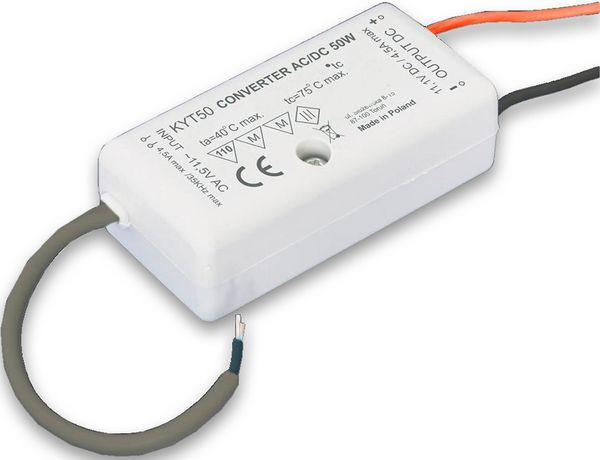 Konverter passend zu 58490 Der Konverter AC/DC ist ausschließlich für den Einsatz mit elektronischen Transformator (11,5 VAC) für LED-Streifen und LED-Lampen (12 V DC) zu verwenden.