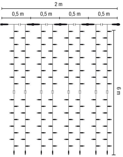 | Kurzbeschreibung | LED-Drape Lite 800 2x6m 36V 28,8W Outdoor Kabel: transparent, LED: warm-weiß ohne Trafo |