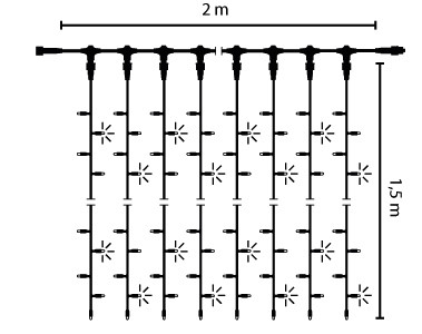 | Kurzbeschreibung | LED Drape Lite Flash 300, 2x1,5m 230V 35W Outdoor Kabel:schwarz LED:weiß Flash:weiß ohne Stecker |