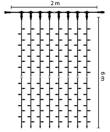 | Kurzbeschreibung | LED Drape Lite 1200 2x6m 230V 70W Indoor Kabel: transparent LED:weiß ohne Stecker |