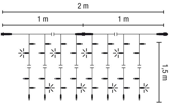| Kurzbeschreibung | LED-Drape Lite Flash 200 2x1,5m 36V 7,2W Outdoor Kabel:Transparent, LED:warmweiß, Flash:weiß |
