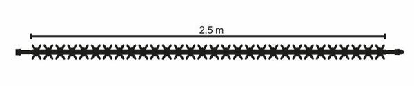 Stringlite Flash, speziell zu kleinen Bündeln angeordnete Lichtpunkte, fixiert an schwarzem Trägerkabel. Zur Erhöhung der Leuchtkraft kann die Kette ab der Mitte zusammengelegt werden. Patentiertes Quick-Fix-System ermöglicht Koppelung von bis zu 62 Ketten, kein Trafo notwendig,