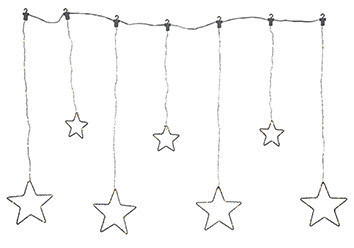 | Kurzbeschreibung | LED-Lichtervorhang mit Sternen 120cm 7 Stränge 80/50cm silber indoor |