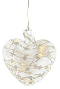 LED-Deko Herz Ø 10 cm Anhänger aus Glas, Steuerung über Fernbedienung möglich (nicht enthalten), mundgeblasen und handbemalt, mit integrierter LED-Beleuchtung, auch als Baum-Schmuck verwendbar, Batterie-Fach am Ende einer transparenten 25-cm-Schnur, Lieferung in Geschenkbox, Batteriebetrieb: 2xAAA (nicht inkl.) Quecksilbergehalt (mg): 0