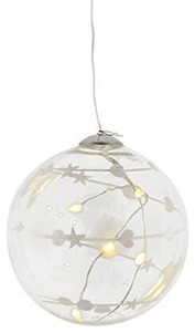LED-Deko Kugel Ø 8 cm Anhänger aus Glas, Steuerung über Fernbedienung möglich (nicht enthalten), mundgeblasen und handbemalt, mit integrierter LED-Beleuchtung, auch als Baum-Schmuck verwendbar, Batterie-Fach am Ende einer transparenten 25-cm-Schnur, Lieferung in Geschenkbox, Batteriebetrieb: 1xAAA (nicht inkl.) Quecksilbergehalt (mg): 0