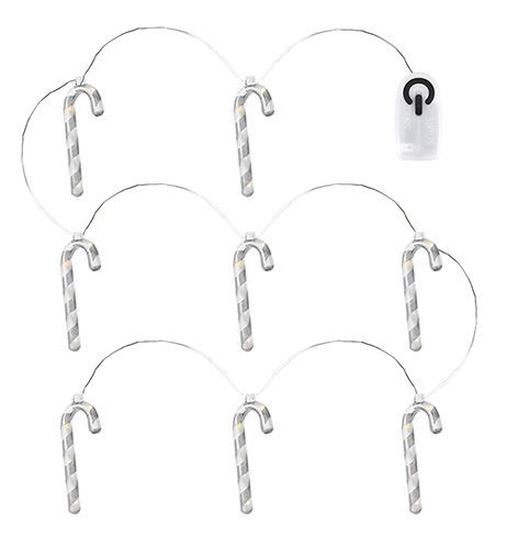 LED Lichterkette Zuckerstange 1,3m weiß/klar 8 weiße Zuckerstangen an 1,05--m-Kette, + 25 cm Zuleitung, Betrieb mit 2xAA Batterie (nicht inkl.), Steuerung über Fernbedienung möglich (nicht inkl.) Energieeffizienzklasse: nicht kennzeichnungspflichtig Quecksilbergehalt (mg): 0