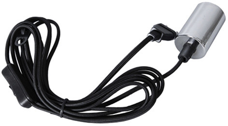 | Kurzbeschreibung | Textilkabel 3,5m mit E27 Fassung chrom Stecker + Schalter, Kabel: schwarz, IP20 |