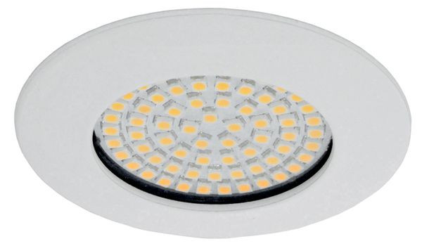 | Kurzbeschreibung | LED-Downlight 68SMD Ø75mm EinbauØ58mm 230VAC 3,5W 310Lm 3000K 100° weiß IP20 |