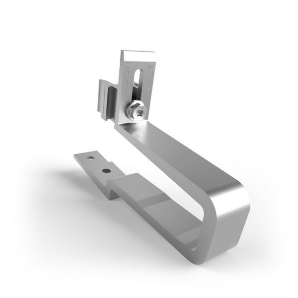 Dachhaken für Systemdächer aus Isolierdachelementen. Durch einen drehbaren Multiadapter kann der Dachhaken mit den Profilen der Serie ProLine sowie mit dem klassischen Schletter Baukastensystem kombiniert werden.