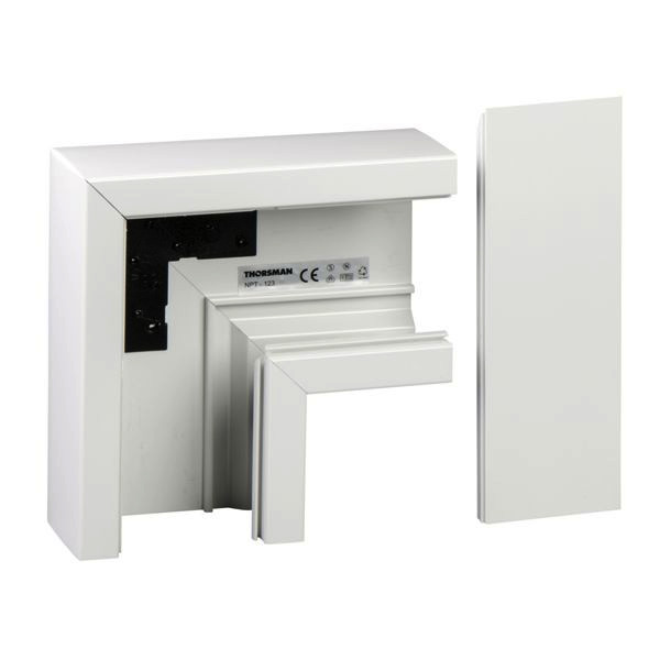 NPT 123/72 Flachwinkel m Abdeckung Halogenf PC/ABS R9016 TypNPT-LS 123/72 9016. 90°-Winkelstück, Kit, mit F80-Frontöffnung. Kann mithilfe von Kabelträgern in Fächer unterteilt werden. Wird mit Frontabdeckung geliefert. Material PC/ABS.