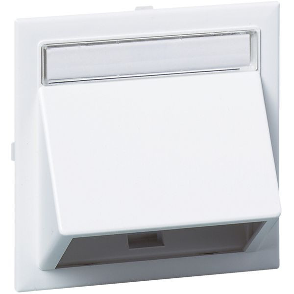Basissatz BK1, Schrägauslass, polarweiß ähnlich RAL 9016 TYP: CYB-BK1-SA-9016: Halogenfreier Basissatz, abgewinkelt, mit einem Etikettenfenster das auch nach dem Entfernen der Abdeckung im Unterteil verbleibt. Der Basissatz besteht aus einer Frontplatte und einem Montagerahmen. Er wird durch einfaches Einrasten eingesetzt. Der Basisatz ist rückwärtig vollständig offen, so dass die Datenleitungen mit dem erforderlichen Biegeradius verlegt und angeschlossen werden können. Daher ist keine Geräteeinbaudose notwendig.