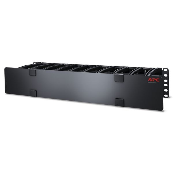 Horizontaler 2HE-Kabelmanager mit hoher Dichte, 150 mm (6 Zoll) tief, mit Abdeckung Verfügt über Kabelzugangsschlitze mit vorinstallierten Bürstenleisten in der Rückplatte für die Kabeldurchführung von vorne nach hinten und eine Bodenplatte mit Funktionen für zusätzliche Kabelbindung und -führung