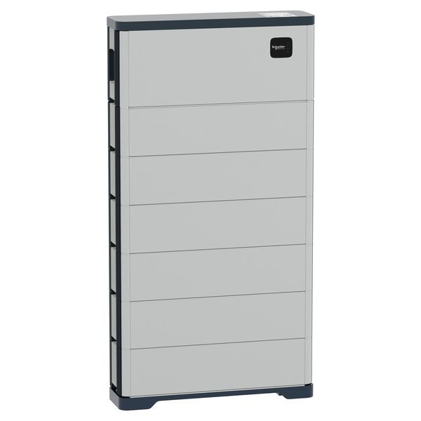 Schneider Boost Batterie Modul mit 20,4kWh Kapazität. Bestehend aus 6 x Schneider Boost Batterie Modul (BATB3KEU3) mit je 3,4kWh Kapazität und dem Schneider Boost Batterie Controller (BATPMEU2). Nutzbare Energie 18600Wh. Betriebstemperatur -25 bis 55°C, Abmessungen BxHxT 799x1533x218 mm, Gewicht 196kg, Schutzgrad IP55. Normen: IEC 63056, IEC 62619, IEC 62477-1, EN 61000-1/3.