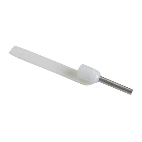 Aderendhülse nach NFC63-023 mit Isolierkragen und Bezeichnungsfahne im Streifengebinde Querschnitt 0,5 mm² - Farbe weiss.