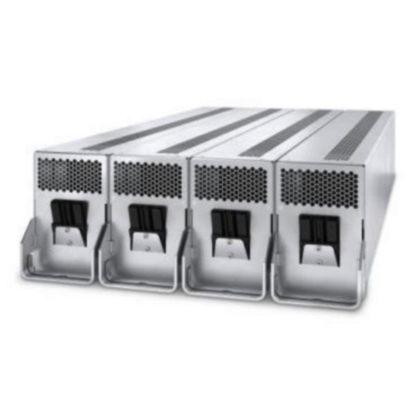 Batteriestrang zur Verwendung mit Easy UPS 3S, mit internen Batteriesteckplätzen und dem leeren, modularen Batteriegehäuse Easy UPS 3S (E3SXR6). Jeder Batteriestrang besteht aus vier 7,2-Ah-Batteriemodulen.