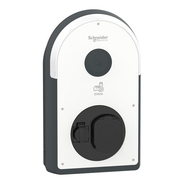 EVlink Pro AC Wallbox mit Typ 2 Steckdose mit Shuttern und Typ F Schukosteckdose. Für den Einsatz in halböffentlichen Garagen oder auf Parkplätzen, für die Innen- oder Außeninstallation an der Wand, auf der EVlink Stele (EVA1PBS1 / EVA1PBS2) oder im Metal Kit (EVA1RWKS1 / EVA1RFKS1 / EVA1RFKS2). Mode 3 Ladung gemäß IEC 61851-1, 3-phasig mit maximal 22 kW Ladeleistung, Typ 2 Steckdose, Typ F Schukosteckdose bis 2,3 kW 1-phasig. mit integriertem MID-Zähler 3-phasig, 6mA Gleichfehlerstromerkennung (ermöglicht den Einsatz eines FI Typ A). Digitaleingänge: 1 für vorübergehende Strombegrenzung, 1 für verschobene/ausgesetzte Ladung, 1 für EV-Anwesenheitserkennung. Zugriffskontroller über NFC / RFID Reader. NFC Reader 13,56 MHz kompatibel mit Typ 1, 2, 4 und 5 Badges, RFID Reader: Entspricht den Protokollen ISO/CEI 14443 A & B und ISO/CEI 15693, Kompatibel mit Mifare Ultralight, Mifare Classic, Mifare Plus. Nutzerinformationen und Statusmeldung über einen gut sichtbaren LED-Bogen, inbetriebnahme der Wallbox über eSetup App via Bluetooth. Kommunikationsstandards: Bluetooth, Ethernet 2 Anschlüsse (1 für Daisy Chain), Modbus serial, Modbus TCP, OCPP 1.6J zur Anbindung an ein Backend sowie dem Lastmanagementsystem EcoStruxure EV Charging Expert. optionales Zubehör: Wifi Modul (EVA1MW), Modem Modul (EVA1MS & EVA1MM), ISO 15118 Modul (EVA1M8), steckbar auf den Ladecontroller. Farbe der Ladestation: Korpus: Dunkelgrau RAL 7016 und Schwarz RAL 9005, Frontabdeckung: Weiß RAL 9003. Abmessungen BxHxT: 317x529x158mm, Gewicht: 7,5 kg, Material: Polycarbonat UV-behandelt. Stoßfestigkeit IK10, Schutzgrad IP54, Betriebstemperatur -30 bis 50°C, Lagertemperatur -40 bis 80°C, Betriebshöhe max. 2000m ohne Derating, rel. Luftfeuchte 5 bis 95%, Eigenverbrauch <10W. Erdungssystem: TT, TN(S) oder TN(C)(S), IT kompatibel mit zusätzlichem Trenntransformator in der Spannungsversorgung. Normen und Standards: CE, E.V. Ready, IEC/EN 61851-1 Ed 3.0, IEC/EN 62196-1 Ed 2.0, IEC/EN 62196-2 Ed 1.0, EN 61000-6-2: 2019, EN 61000-6-3:2007 + A1:2011, IEC 60884-1 und NF-C 61314.