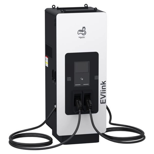 EVlink Pro DC Schnelllader mit 120kW Ladeleistung mit der Möglichkeit zum gleichzeitigen Laden von zwei Fahrzeugen. Eichrechtskonform zur rechtssicheren Abrechnung. Die Ladestation passt sich automatisch dem tatsächlichen Ladebedarf jedes Fahrzeugs an und nutzt so die volle verfügbare Ladeleistung, um die Ladedauer so gering wie möglich zu halten. verfügt über 2 CCS2 Anschlüsse mit je 7,5m Kabellänge ohne Kabelmanagementmentsystem. Ausgangsspannung am Ladeunkt: 150-1.000V DC, Ausgangsstrom: mx. 300A, Power-Modul-Größe: 30kW. integrierter Kurzschluss- und Überlastschutz sowie Fehlerstrom-Schutzschalter am DC-Anschluss, Überhitzungsschutz, Temperaturregulierung, Überspannungskategorie III, Standby Verbrauch 90W, Lautstärke 65dB (1m Abstand zur Ladestation). Für das sichere Laden von Elektrofahrzeugen gemäß IEC61851-1 ed.3 und IEC61851-23. Ladefreigabe via RFID-Karte, RFID reader gemäss ISO/IEC 14443 Typ A & B und ISO/IEC 15693, NFC-Leser kompatibel mit Tag-Typ 1, 2, 4, 5. Leserunterstützung: MIFARE Ultralight, MIFARE Classic 1K/4K, MIFARE DESFire EV1/EV2, MIFARE Plus (Karten). Bedienung über ein mehrsprachiges 10,4 Zoll LCD Display, verfügbare Sprachen: Deutsch, Englisch, Französisch, Spanisch, Norwegisch, weitere auf Anfrage. Kommunikation zu Backendplattformen und dem Ecostruxure EV Charging Expert über OCPP1.6j, Netzwerkanbindung via WLAN, 4G oder Ethernet. Kommunikation zum Fahrzeug mittels ISO15118/DIN700121. Bodenstehende Ladestation für die Außenaufstellung, Schutzgrad IP55, Stoßfestigkeit IK10 (IK08 für das Display), Leistungsfaktor 0,99 und Wirkungsgrad 94,5% bei Nennausgangsleistung. THDi max. 5%, Netzanschluss 3-phasig an TT, TN-S/TN-C-S und IT Netz (mit zusätzlichem Trenntransformator an der Spannungsversorgung), Netzspannung 400V, Eingangsstrom 193A. Abmessungen BxHxT: 833mm x 2.103mm x 963mm, Gewicht: ca. 511kg, Betriebstemperatur -30 bis 50°C, rel. Luftfeuchte 5-95%, Betriebshöhe bis zu 2.000m. Gehäusematerial Edelstahl, Farbe Vorderseite RAL 9003, Rückwand und Seitenteile PANTONE Black C. Normen und Standards: CE, IEC/EN 61851-1 ? Ausg. 3.0, IEC/EN 61851-23 ? Ausg. 1.0, IEC/EN 62196-1 und 62196-3, EMV EN 61000-6-2 ? Ausg. 2005 ? EN 61000-6-4 ? EMV Klasse A. Funkzertifizierung. RFID/NFC: EN 300330 V2.1.1, 4G: EN 301908-13 V13.1.1, Wi-Fi: EN 300328 V2.2.2 ? EN 301896. EMV Funkausrüstung. EN 301489-1 V2.2.0, RFID/NFC: EMV EN 301489-3 V2.1.1, 4G: EMV EN 301489-52 V1.1.0, WiFi: EMV EN 301489-17 V2.1.4.