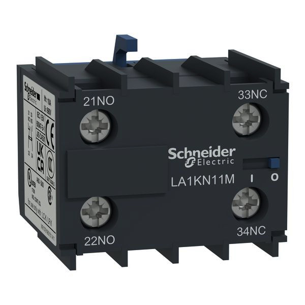 Unverzögerter Hilfsschalterblock für Schütze TeSys K (außer LP4K12 und LP5K12). Er bietet 1S+1Ö-Kontakte mit einer Nennspannung von bis zu 10 A, 690 V AC, Anschluss über Schraubklemmenanschlüsse mit Referenzierung gemäß EN 50012. Einfache Aufsteckmontage an der Vorderseite, für hohe Zuverlässigkeit und Haltbarkeit. Es verfügt über mehrere Normen (IEC, UL, CSA, CCC) sowie über eine Green Premium-Konformität (RoHs/Reach).
