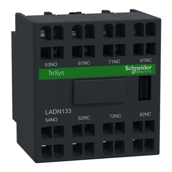 TeSys D unverzögerter Hilfskontaktblock, für Schütze LC1D und Steuerrelais CAD. Es verfügt über 1NO+3NC-Kontakte (NC mirror certified) mit einer Nennleistung von bis zu 10A 690V AC, Anschluss über Federklemmen. Clip-on-Frontmontage, sie sorgt für hohe Zuverlässigkeit und Haltbarkeit. Zertifiziert nach mehreren Normen (IEC, UL, CSA, CCC, EAC), Green Premium-konform (RoHS/REACh).