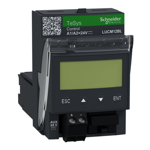 Steuereinheit TeSys LUCD, 3-12A, 24 V DC. Klasse 20, Frequenzbereich: 40-60 Hz, Temperaturausgleich: -25-70 °C, gemäß IEC 60947-6-2. Basisschutz und erweiterte Funktionen, Kommunikation. Multi-Standard zertifiziert (IEC, UL, CSA, CCC, EAC, Marine) und Green Premium konform (RoHs/Reach).
