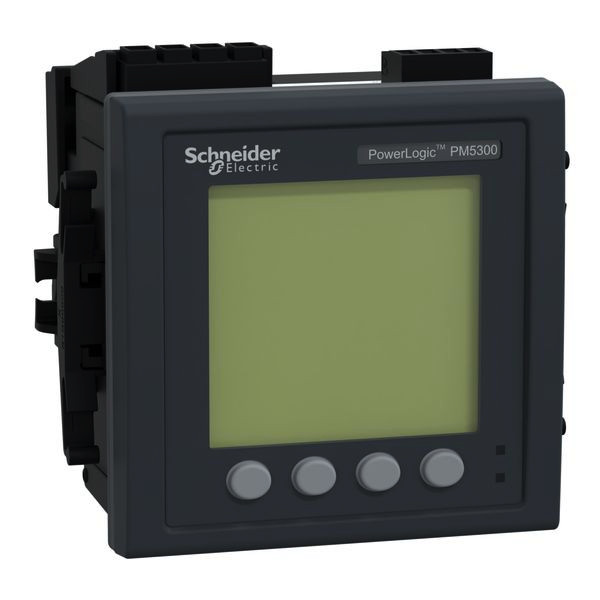 Das PowerLogic PM5340 ist ein Universalmessgerät für den Fronteinbau (96 mm x 96 mm) mit vollgraphischer und hinterleuchteter LCD Anzeige. Das Messgerät bietet eine Genauigkeit der Klasse 0,5s gemäß der Norm IEC 62053-22 und 64 Abtastungen pro Zyklus. Das Messgerät misst Energie, Wirk- und Blindleistung, Spannung, Strom, Frequenz, Leistungsfaktor und bis zur 31. Oberschwingung. Mit 4 Quadranten Energiemessung. 256 KiloByte Speicher für zwei feste Parameter, Wirk- und Blindenergie, enthalten. Das Gerät funktioniert in einem 50Hz oder 60Hz Netz und akzeptiert eine Versorgungsspannung von 100 bis 415 VAC und 125 bis 250 VDC. Der Bemessungsstrom dieses Messgerätes beträgt 1 A oder 5 A und unterstützt Konfigurationen mit einer Phase und Neutralleiter, drei Phasen oder drei Phasen und Neutralleiter. Der Bereich der Messspannung zwischen den Phasen beträgt 35 bis 690 VAC bei 47 bis 63 Hz. Der Messbereich zwischen Phase und Nullleiter beträgt 20 bis 400 VAC bei 45 bis 65 Hz. Das Kommunikationsprotokoll ist Modbus TCP/IP und BACnet/IP basierend auf 10/100 Mbit/s, Ethernet mit Anschluss RJ45 Unterstützung. Das Messgerät verfügt außerdem über 2 konfigurierbare digitale Eingänge oder digitale Ausgänge und zwei Relaisausgänge. Es gibt 35 konfigurierbare Alarme und es werden vier Tarife unterstützt. Die Produktabmessungen sind wie folgt: Breite 96 Millimeter, Tiefe 72 Millimeter, Höhe 96 Millimeter und Produktgewicht 430 g.