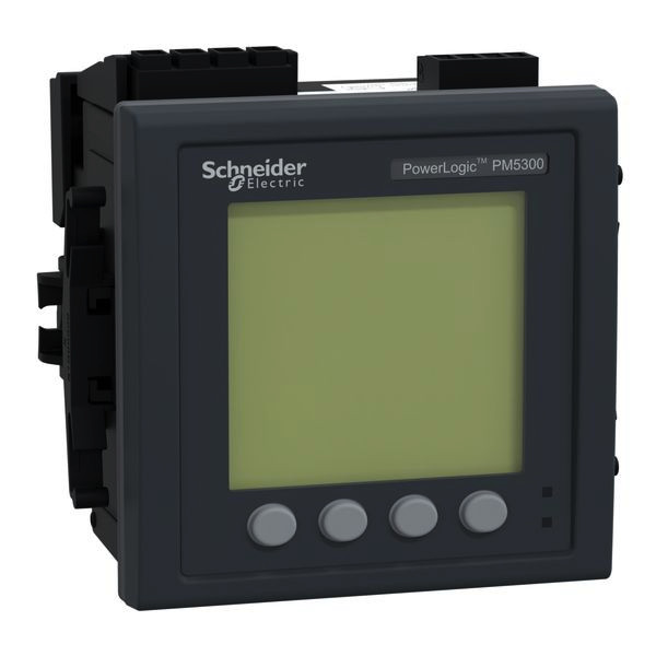 Das PowerLogic PM5341 ist ein Universalmessgerät für den Fronteinbau (96 mm x 96 mm) mit vollgraphischer und hinterleuchteter LCD Anzeige und verfügt über eine zusätzliche MID Zertifizierung. Das Messgerät bietet eine Genauigkeit der Klasse 0,5s gemäß der Norm IEC 62053-22 und 64 Abtastungen pro Zyklus. Das Messgerät misst Energie, Wirk- und Blindleistung, Spannung, Strom, Frequenz, Leistungsfaktor und bis zur 31. Oberschwingung. Mit 4 Quadranten Energiemessung. 256 KiloByte Speicher für zwei feste Parameter, Wirk- und Blindenergie, enthalten. Das Gerät funktioniert in einem 50Hz oder 60Hz Netz und akzeptiert eine Versorgungsspannung von 100 bis 415 VAC und 125 bis 250 VDC. Der Bemessungsstrom dieses Messgerätes beträgt 1 A oder 5 A und unterstützt Konfigurationen mit einer Phase und Neutralleiter, drei Phasen oder drei Phasen und Neutralleiter. Der Bereich der Messspannung zwischen den Phasen beträgt 35 bis 690 VAC bei 47 bis 63 Hz. Der Messbereich zwischen Phase und Nullleiter beträgt 20 bis 400 VAC bei 45 bis 65 Hz. Das Kommunikationsprotokoll ist Modbus TCP/IP und BACnet/IP basierend auf 10/100 Mbit/s, Ethernet mit Anschluss RJ45 Unterstützung. Das Messgerät verfügt außerdem über 2 konfigurierbare digitale Eingänge oder digitale Ausgänge und zwei Relaisausgänge. Es gibt 35 konfigurierbare Alarme und es werden vier Tarife unterstützt. Die Produktabmessungen sind wie folgt: Breite 96 Millimeter, Tiefe 72 Millimeter, Höhe 96 Millimeter und Produktgewicht 430 g.