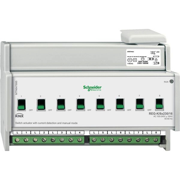 | Kurzbeschreibung | Schaltaktor REG-K/8x230/16 mit Handbetätigung und Stromerkennung, lichtgrau |