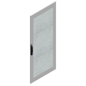 Spacial SF Tür mit Belüftungsschlitzen. Für eine natürliche Belüftung des Gehäuses, Einbaulage von vorne. Verriegelungssystem mit Griff und Doppelbart-Einsatz 5mm. Stahlblech. Grau RAL 7035.