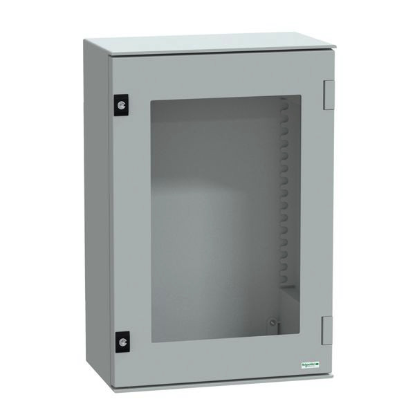 | Kurzbeschreibung | PanelSeT PLM Polyestergehäuse - Wandmontage, transparente Tür, ohne MP H647xB436xT250mm IP66, IK10, RAL 7035 |