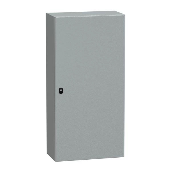 PanelSeT S3D Wandgehäuse aus Stahl mit glatter Tür. Einteiliges Gehäuse, ohne Montageplatte. Robuste Konstruktion auf Basis eines neuen Designs. 3-Punkt-Verschlusssystem mit Handgriff und 3-mm-Doppelstabschlosseinsatz. Aus Stahl, Epoxid-Polyester-Pulverlackierung. Rinnenförmige Frontschiene, doppelte Blechstärke. Schutzart IP 66, IK10, Grau RAL 7035. 1 Kabelverschraubungsplatte enthalten, Standard. Umfangreiches Angebot an Zubehör. Die Verpackung ist nach der Montage wiederverwendbar.