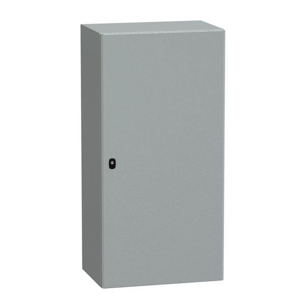 PanelSeT S3D Wandgehäuse aus Stahl mit glatter Tür. Einteiliges Gehäuse, ohne Montageplatte. Robuste Konstruktion auf Basis eines neuen Designs. 3-Punkt-Verschlusssystem mit Handgriff und 3-mm-Doppelstabschlosseinsatz. Aus Stahl, Epoxid-Polyester-Pulverlackierung. Rinnenförmige Frontschiene, doppelte Blechstärke. Schutzart IP 66, IK10, Grau RAL 7035. 1 Kabelverschraubungsplatte enthalten, Standard. Umfangreiches Angebot an Zubehör. Die Verpackung ist nach der Montage wiederverwendbar.