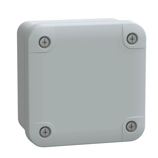 PanelSeT TBP Industrie-PC-Box mit Deckel H10. Innenmaße 80 x 80 x 80 x 65 mm. Ext 89 x 89 x 89 x 51 mm. Wandmontagegehäuse mit flachem Deckel. Schraubenverriegelung mit unverlierbaren Kunststoffschrauben (Schlitz). Zertifizierungen DEMKO, SEMKO, TÜV, UL. UL 508 A Standard. Feuerbeständigkeit 960°. Polycarbonat, Umgebungstemperatur für Lagerung/Betrieb (-15 bis 60 °C)/(-25 bis 80 °C). IP66 (NEMA 4.4X), IK08, Grau RAL 7035, Isolationsklasse II. Verpackungseinheit 5 Stk.