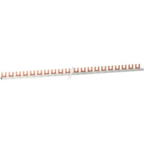 Phasenschiene Gabel Resi9 1-polig, 57TE, ablängbar, Nennstrom 63A, Betriebsspannung (Ue) 230/400V AC, Isolationsspannung 500V Farbe RAL 7035.