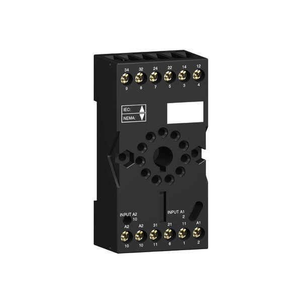 Harmony Relay. Stecksockel zur Aufnahme von 8 Zylinderstiften von Universalrelais RUMC2 oder Zeitrelais RE48. Die Kastenklemmen sind in getrennter Anordnung angebracht.