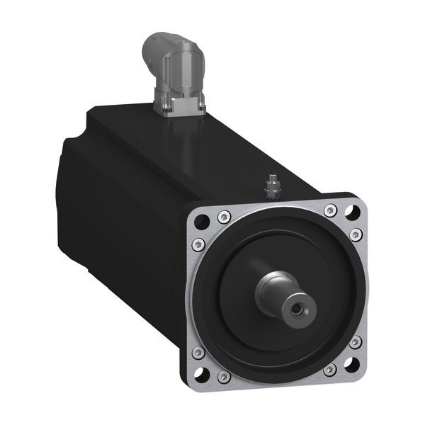 SH3-Servomotor für Lexium 52 & Lexium 62. Synchronmotor, niedriges Trägheitsmoment. Baugröße 100 mm - Nennleistung <=2560 W. Moment Dauerstillstand/Spitze 8,0/28,3 Nm. Drehzahl Nenn/Max <=4800/6000 U/min. Wellenende glatt in IP65 - Gehäuse IP65. Singelturn Encoder DSL, SinCos, 18x1024. keine Haltebremse und Wellendurchmesser von 19 mm. Anschluss mit 1 Kabel, 90° gewinkelt, drehbar. 2x M23.