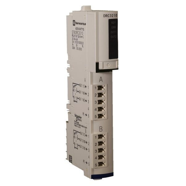 Modicon STB. Digitale Ausgangsmodule. Kit dig. Ausgangsmodul Standard STB, 24 V 115-230 V AC DC, 2 A. Kanäle 2. Konformität IEC/EN 61131-2 (Ja). Lieferumfang der Kit-Bestellbezeichnungen. xxxxK beinhaltet das Elektronikmodul, den Modulträger und die entsprechende Anschlusstechnik je einmal in Schraubund in Federzug-Klemmen-Ausführung.