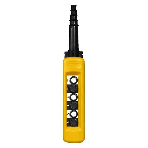 Diese XACA Pendeltankstelle ist ideal für die Steuerung von eintourigen Hebezeuganwendungen. Er hat 1 -up-, 1 -down-, 1 -left-, 1 -right- und 2 -diagonal- Drucktasten mit 1 Schließer pro Taste. Es ist IP65. Diese pistolengriffförmige Hängesteuerung ist ideal für die direkte Steuerung mit schweren Arbeitshandschuhen von mechanischen Handhabungsanwendungen wie Brückenkränen, Turmkränen, festen Hebezeugen und Trägerzügen. Dank seines robusten, doppelt isolierten thermoplastischen Materials ist er stoß- und korrosionsbeständig. Seine hohe Belastbarkeit ermöglicht 1 Million Operationen.