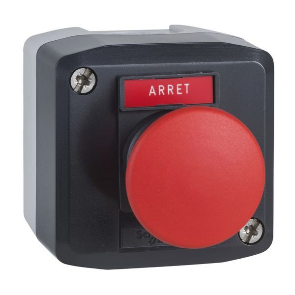 | Kurzbeschreibung | Aufbaugehäuse, Harmony XALD, Kunststoff, dunkelgrau, 1 Pilzdrucktaster, rot, ARRET, 22mm, 1Ö |