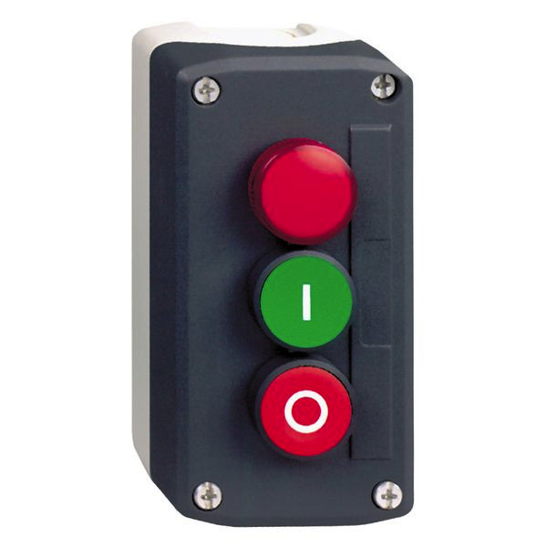 | Kurzbeschreibung | Aufbaugehäuse, Harmony XALD, Kunststoff, dunkelgrau, 2 Drucktaster, I-O, 1 Leuchtmelder, 24V ACDC, 22mm, 1S+1Ö |