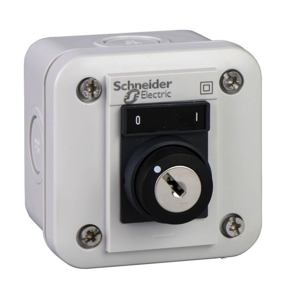 | Kurzbeschreibung | Aufbaugehäuse, Harmony XALE, Kunststoff, hellgrau, 1 Schlüsselschalter, 3 Stellungen, I-O-II, 22mm, 2S |