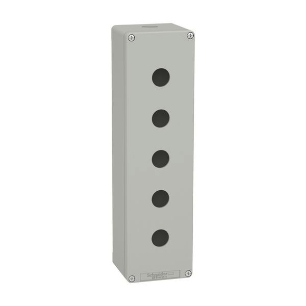 Leergehäuse der Baureihe Harmony XAP. Aus Metall mit Aluminiumegierung. Farbe: grau, mit einer Bohrung von 5 x 22mm. Größe des Gehäuses: 85x310x77. Mit einer M32 Kabeldurchführung. IP-Schutzklassen bis IP69K und Umgebungstemperaturen von -25°C bis +70°C. Die modularen Harmony Drucktaster Baureihen mit 22mm oder 30mm Einbaumaß kombinieren einfache Installation, Effizienz, modernes Design, Flexibilität mit höchster Robustheit. Produktstandards gem. EN/IEC 60947-5-1, EN/IEC 60947-5-4, CSA C22.2 No 14, UL 508, EN/IEC 60947-1, JIS C 4520. Zertifizierungen nach DNV, GL, UL gelistet, RINA, BV, CSA, LROS (Lloyds register of shipping). Produktstandards gem. EN/IEC 60947-5-1, EN/IEC 60947-5-4, CSA C22.2 No 14, UL 508, EN/IEC 60947-1, JIS C 4520.