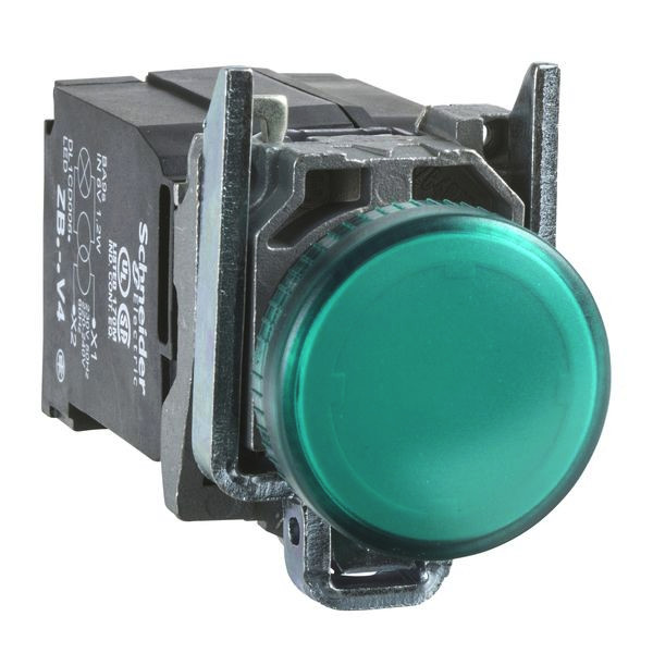 | Kurzbeschreibung | Leuchtmelder, Harmony XB4, Metall, 22mm, grün, mit Trafo, Glühlampe BA9s, glatte Kalotte, Schraubklemme, 230V AC |