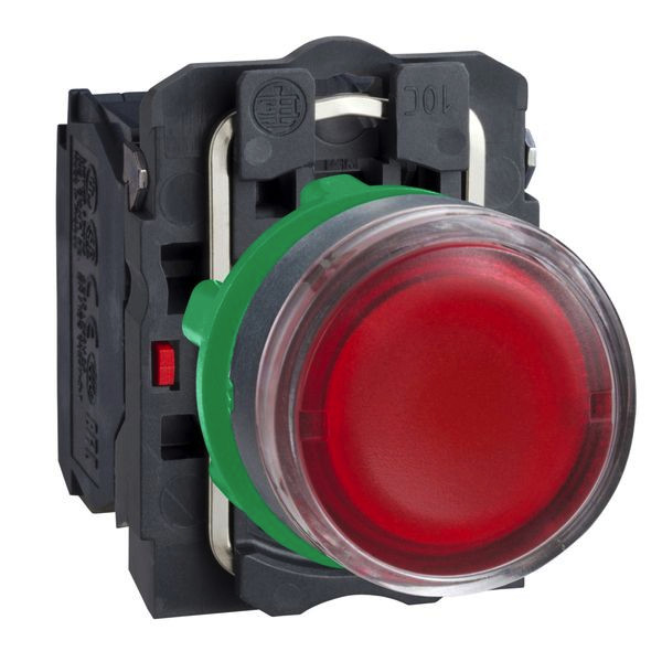 | Kurzbeschreibung | Leuchtdrucktaster, rot, flach, Komplettgerät Ø22 ohne Rastung 1S+1Ö 220-240V |