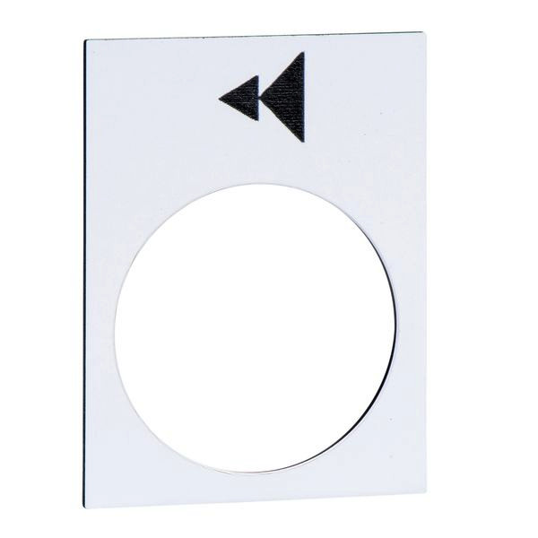 Markierte Bezeichnungsschild 30x40mm, die mit einem linken, langsamen Schnellsymbol gekennzeichnet ist. Es ist ein Zubehör der Baureihe Harmony XAC Hängetaster für 22-mm-Kunststoff-Signaleinheiten mit Durchmesser.