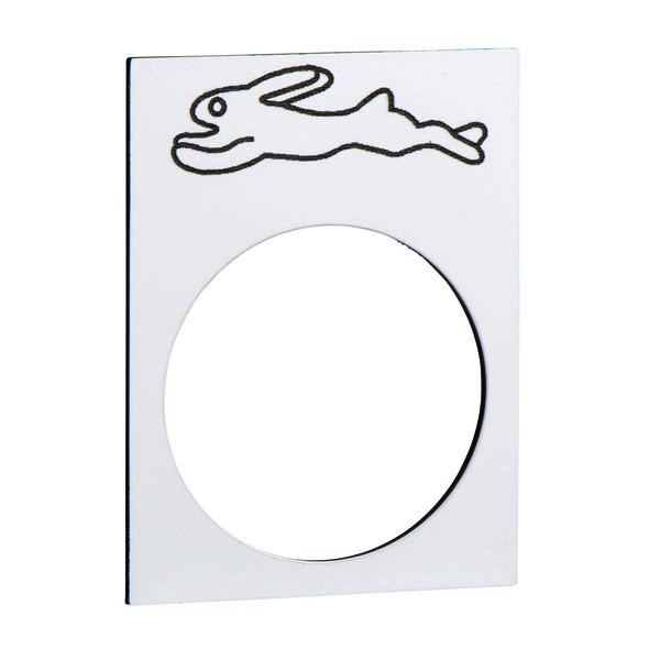 Beschriftete Bezeichnungsschild 30x40mm - weiß - mit Symbol schnell gekennzeichnet. Es ist ein Zubehör der Baureihe Harmony XAC Hängetaster für 22-mm-Kunststoff-Signaleinheiten mit Durchmesser.